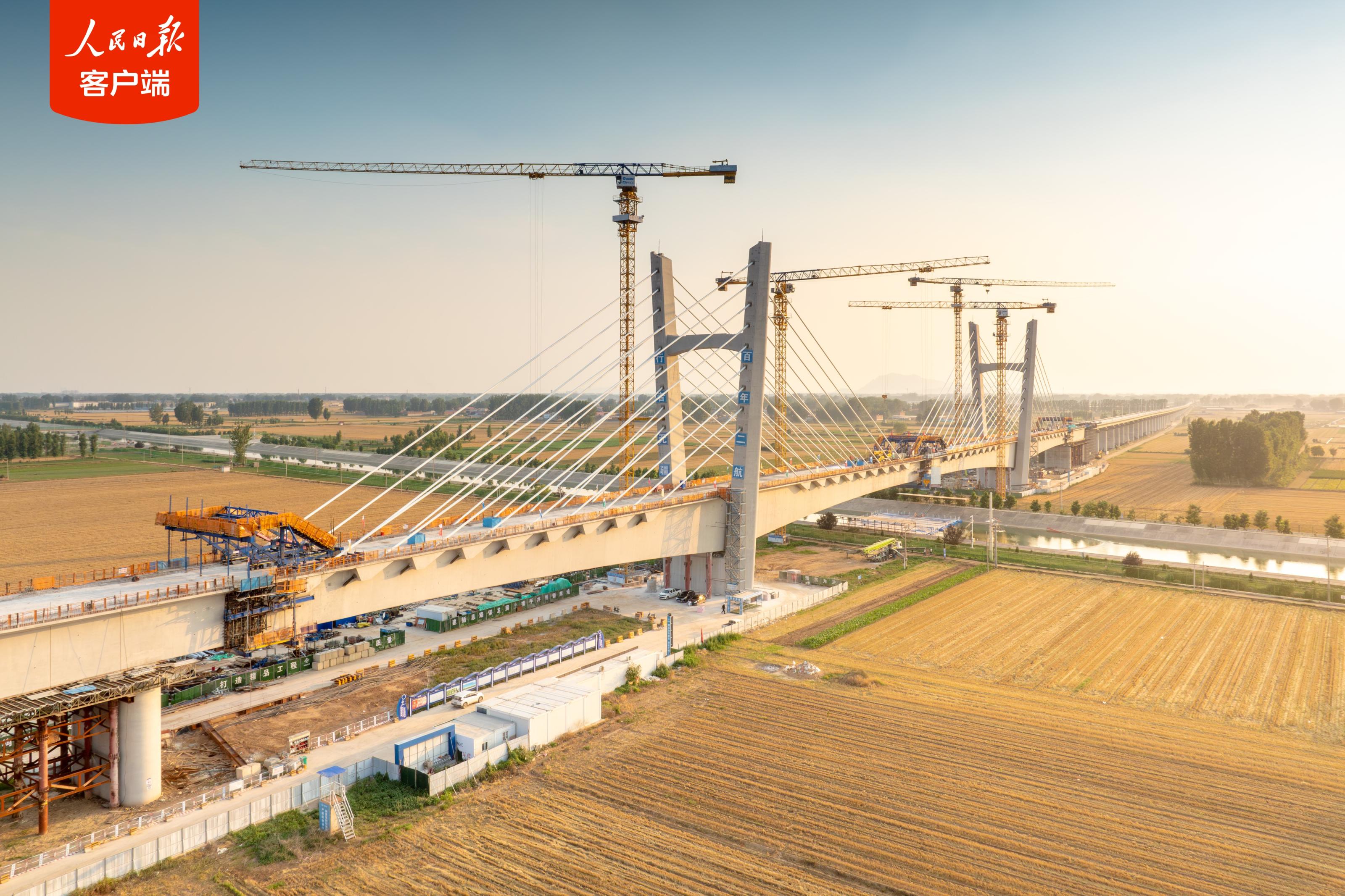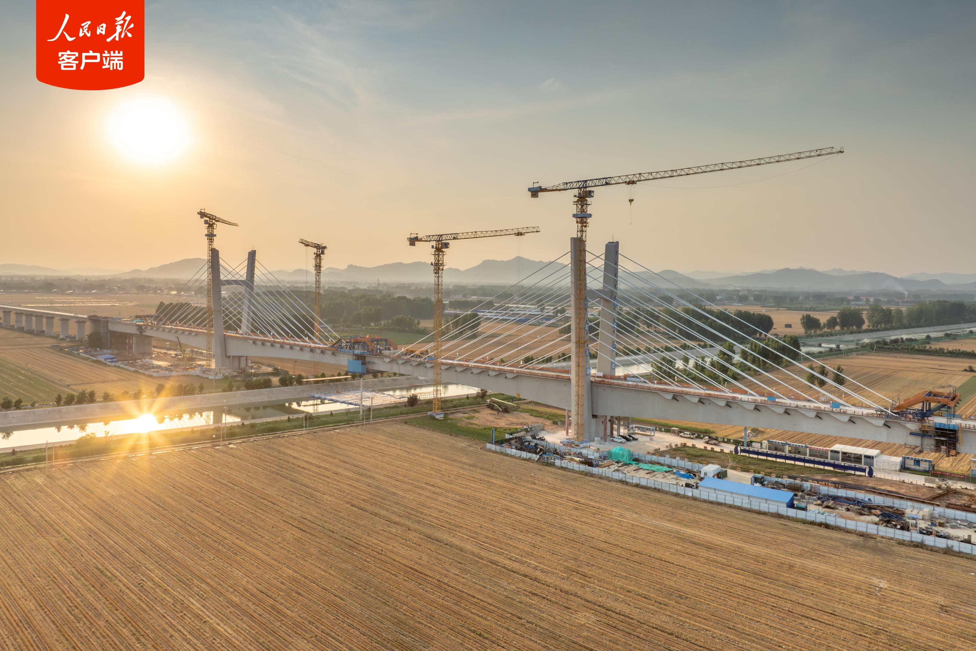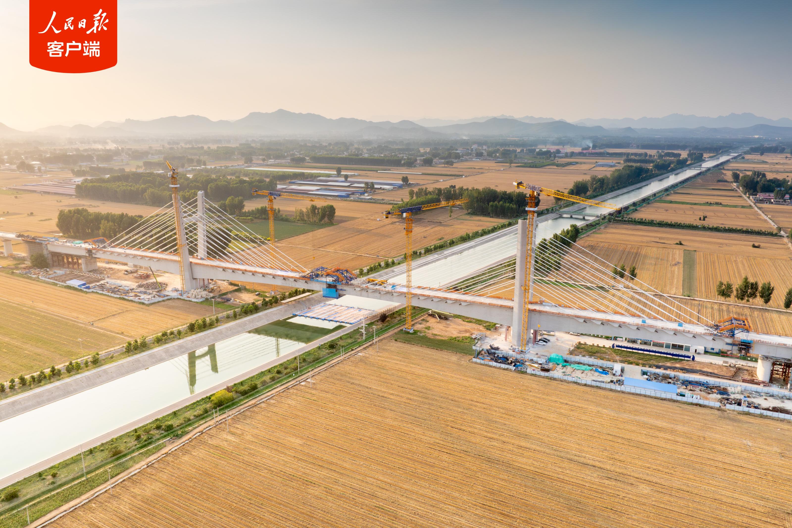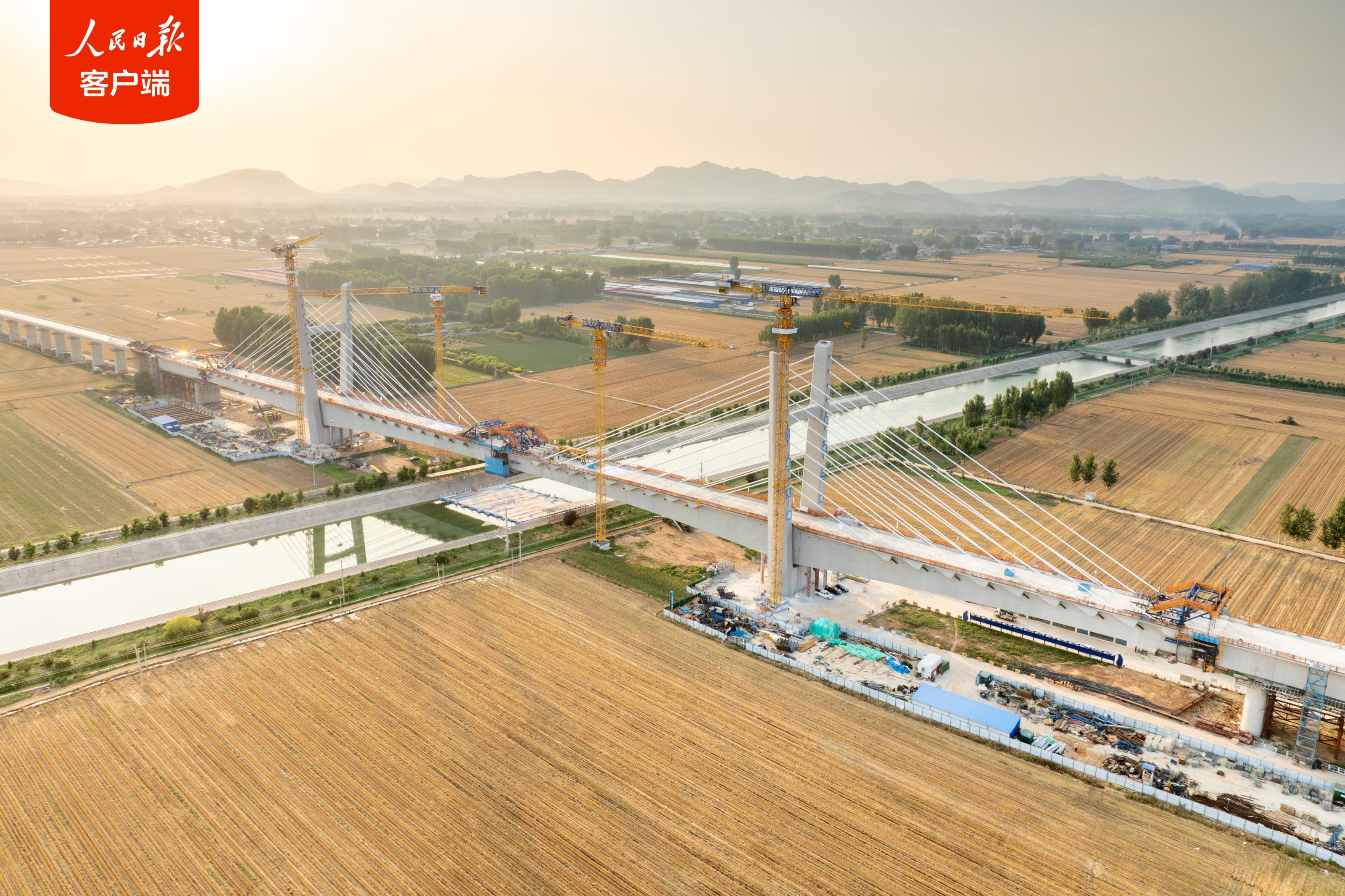 雄忻高铁为雄安新区至忻州高速铁路,线路东起雄安站,西至忻州西站,途径河北、山西两省,全长342公里,设计时速350公里。本次实现合龙的雄忻高铁跨南水北调矮塔斜拉桥为全线重要的控制性工程,全长526.7米,塔高66.5米。