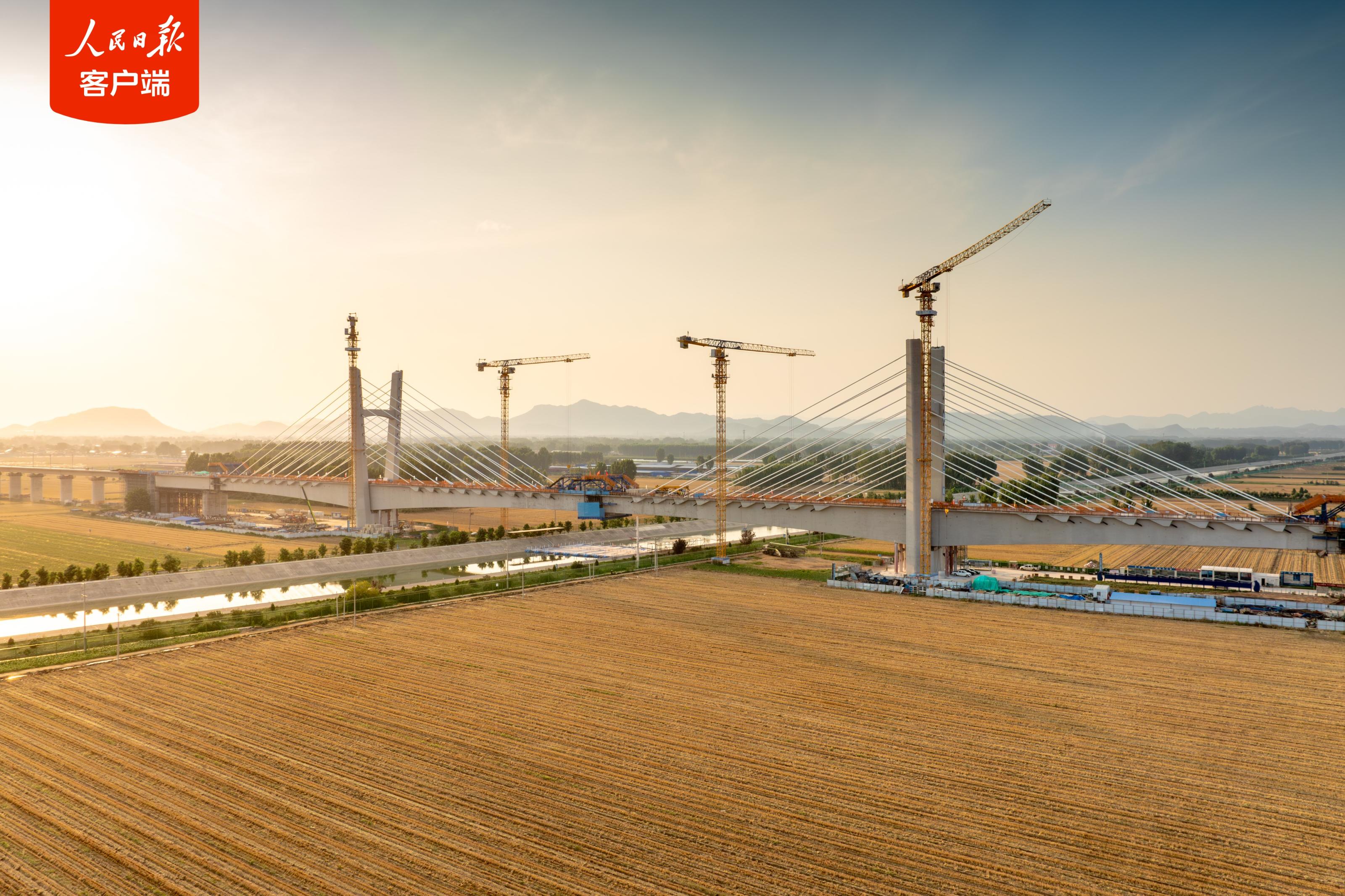 河北唐县,金色麦田之上,一桥飞跃南水北调中线干渠而过。6月26日,由中交二航局承建的雄忻高铁跨南水北调矮塔斜拉桥顺利合龙,标志着该大桥正式进入桥面施工阶段。